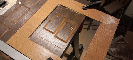 ich das Füllstück und drumherum den Rahmen, richte alles zur Brettkante aus. Nach dem fixieren des