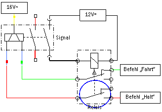 der Befehl „Fahrt“ nur dann zum Signal gelangen kann, wenn das Signal auf