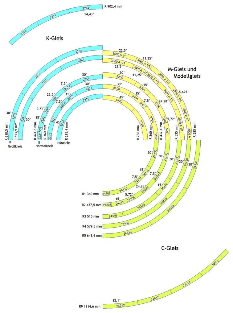gestaltbare Bögen. Achtung: Die K-Gleise wurden bis