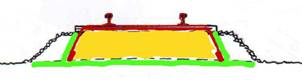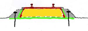 die gezeichneten Gräben beidseitig des Gleises. Ich möchte das sichtbare