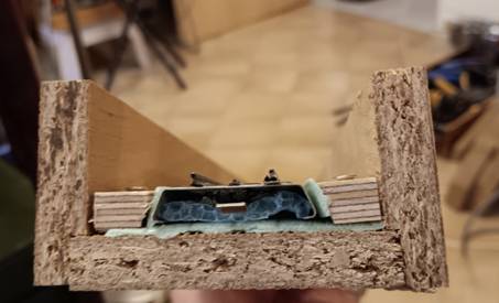 Resonanzraum des M-Gleises. Unter das Gleis kommt