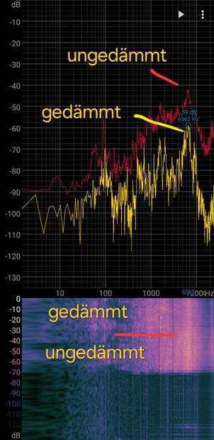 messbar: etwa 18 dB bringt die Konstruktion gegenüber dem nackten Gleis auf