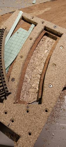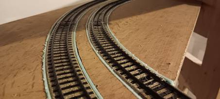 Paradesterecke. Ab hier lasse ich die Gleise in die Trassenbretter ein, um