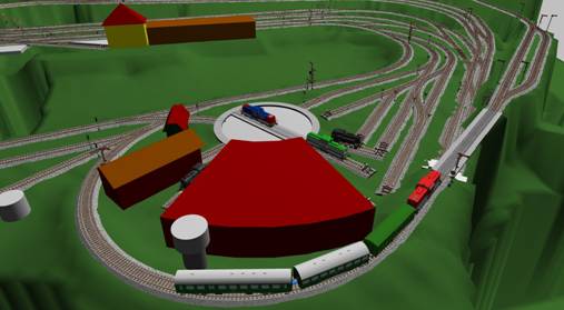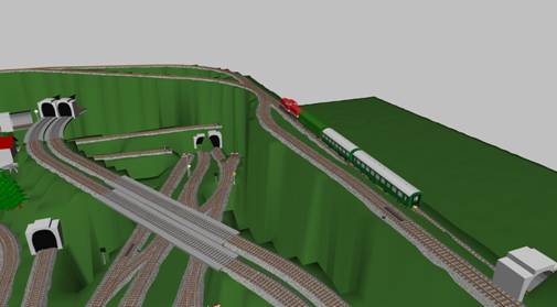 Strecke windet sich um den Rundschuppen, überquert mit einer Bogenbrücke das