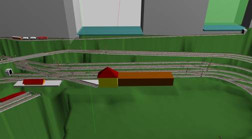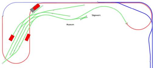 Gleis für ankommende und abgehende Güterzüge und ein Ausziehgleis. Ein