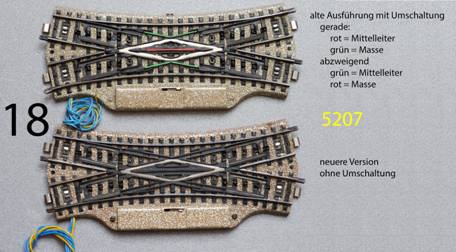 Gleisenden verbunden) und eine neuere mit getrennten Mittelleitern wie