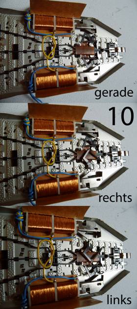 einfache elektromagnetische Weiche hat 3 Anschlussleitungen: 1.