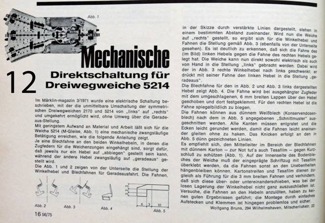 Märklin-Magazin 2/1975 wurde der Einbau einer mechanischen Zwangsschaltung