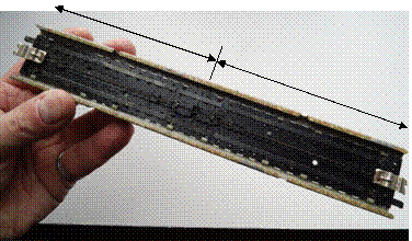 breiterer Schwellenabstand auf der Hälfte des um 3 mm längeren Gleisstückes. |