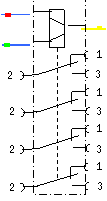 Umschaltung erfolgt durch abwechselnden Kontakt der beiden blauen Leitungen