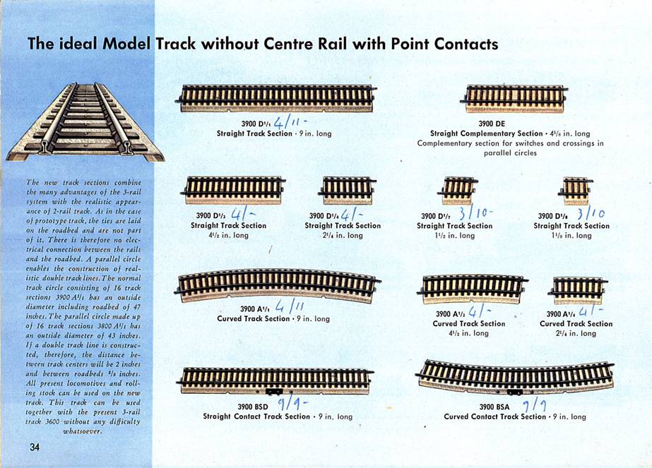 from the 1955 catalog for the „Modellgleis“: „These „Modellgleise“ combine the advantages of the 3-rail track with the