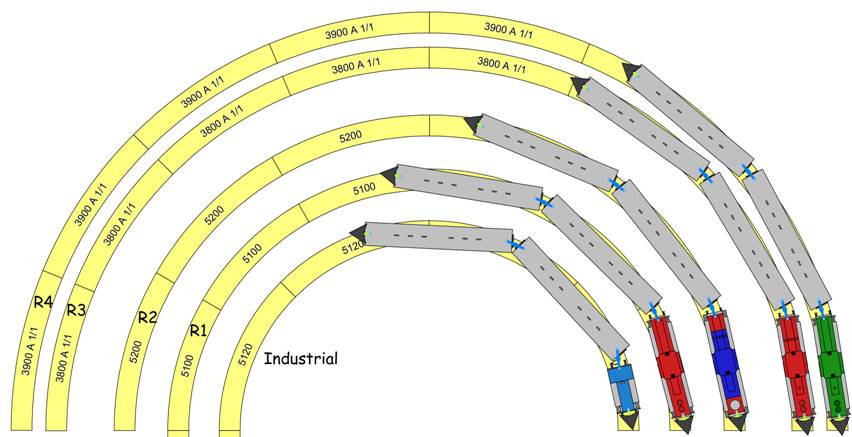 system comprised 2 radii (R4 and R5), straight tracks, contact tracks, the