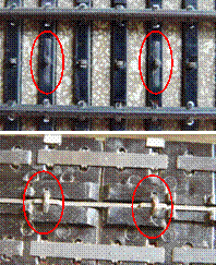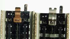 top-bottom position of the copper tongues with problems. The nickel-plated tongues of the second